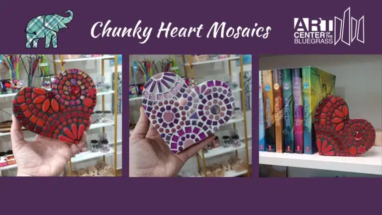 Create a one-of-a-kind piece of art, perfect for Valentine’s Day—or any occasion to spread some love! In this class, students will decorate a 5″ MDF base with a variety of vibrant glass and ceramic tiles. The finished artwork is designed to stand on its own, making it a beautiful addition to your mantel, bookshelf, or desk.
